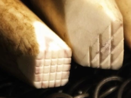 I have listed them in order of complexity, so they each build on the skills of the previous one. I typically use elk or deer antler tips and make my dies using sections that are anywhere from 4 to 6 cm in length, with the carved face on the narrower end. To read more about why, or to see more in-depth information on materials, tools, and historical examples, you can read this much longer post.