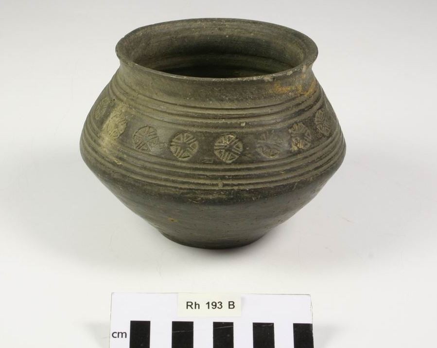 I was intrigued when I saw this Frankish pot from the Rijksmuseum van Oudheden go by in the museum database, since the decorative stamping was unusually minimalist compared to many others. This shape is called “biconic” in English, the form is essentially two conical portions, although if you are searching in databases in other languages,Continue reading “Rhenen Grave 562 E”