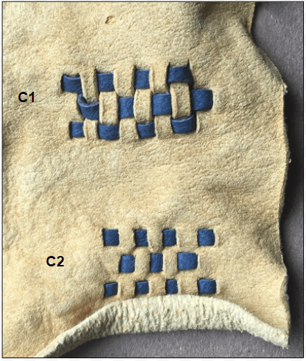 Although the basketweave version is prevalent and has been propagating across Pinterest for some time, all available photographic and written evidence supports the individual slit method as the historical technique used to produce the artifacts found in Birka. The only basis for the basketweave technique seems to be a misinterpretation of the first published reconstruction drawing from 1940, which has circulated widely in recent years. Between the original publication of Birka I and the subsequent analysis published in Birka II:1, the surviving fragments continued to deteriorate and some of the leather finds were lost completely. In my opinion, therefore, the photographic plates in Birka I likely represent the best visual source for further study on the topic. Experimentation indicates that the historical method visible in these early photographs and described in Anne-Sofie Gräslund’s detailed description offers several advantages over the more common modern reproduction technique, and my hope is that this paper will encourage others to try it.