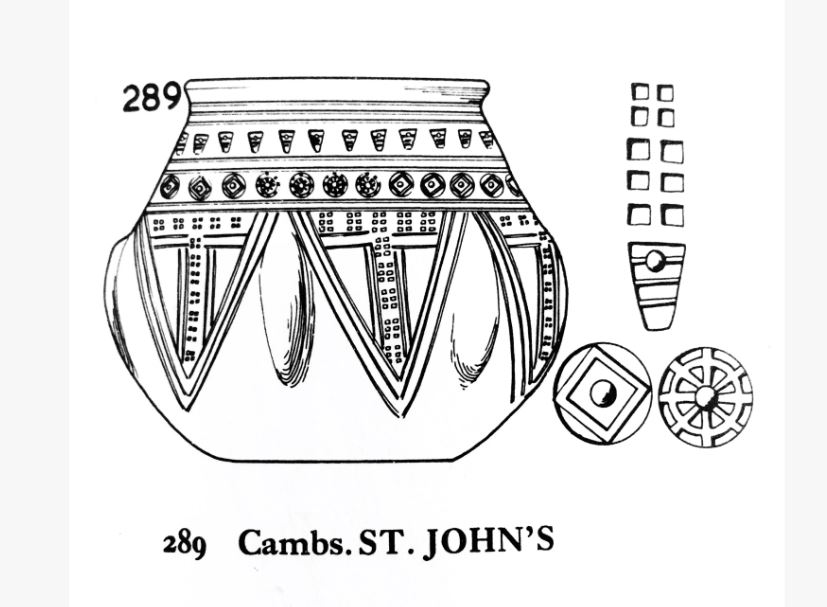 After a run of mostly Anglian stamps, I thought I would mix it up with this Kentish pot. The triangular stamp has a leaf-vein motif, and the shape certainly puts me in mind of a silver birch leaf or perhaps a black poplar. The pot itself is in the collection of the museum in Maidstone,Continue reading “O (inverted) Christmas Tree…”