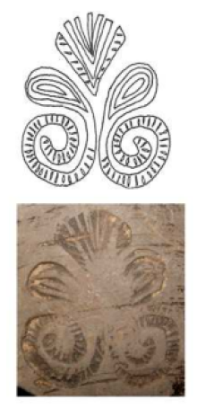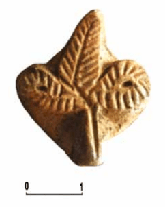 At left, a stamp die from the Lágymányos workshop in Aquincum (Nagy, 2017). At right, a trefoil plant stamp die, c.100-150 CE, from Claudium Celeia, modern-day Celje, Slovenia (Krajšek and Žerjal, 2022).