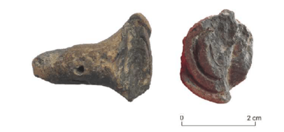 - Point tools: these are also generally repurposed items and nearly all are identifiable: a mix of iron hairpins and needles, iron styluses, and worked bone hairpins. Murphy and Poblome successfully matched the impressions of these items with decorative marks on pottery molds from the site, so these are not random items accidentally lost or discarded in the workshop.