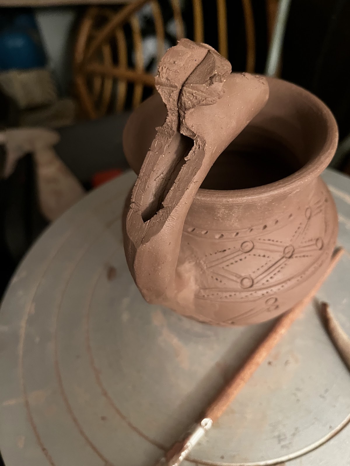 - experiment with methods of forming the handles to gain insight into how the mugs were assembled